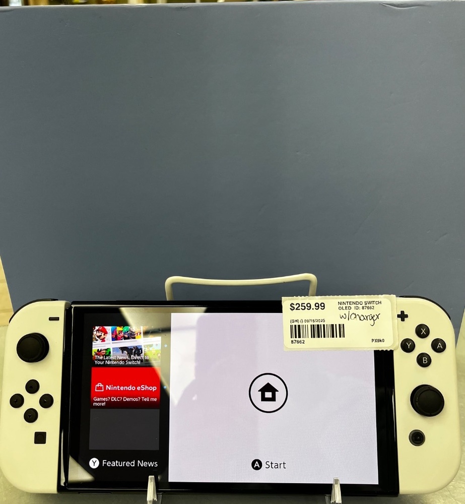 Meet the newest member of the Nintendo Switch family The new system features a vibrant 7-inch OLED screen, a wide adjustable stand, a dock with a wired LAN port, 64GB of internal storage, and enhanced audio. Play anytime, anywhere, with anyone. Pick it up and play with the Joy-Con controllers attached.